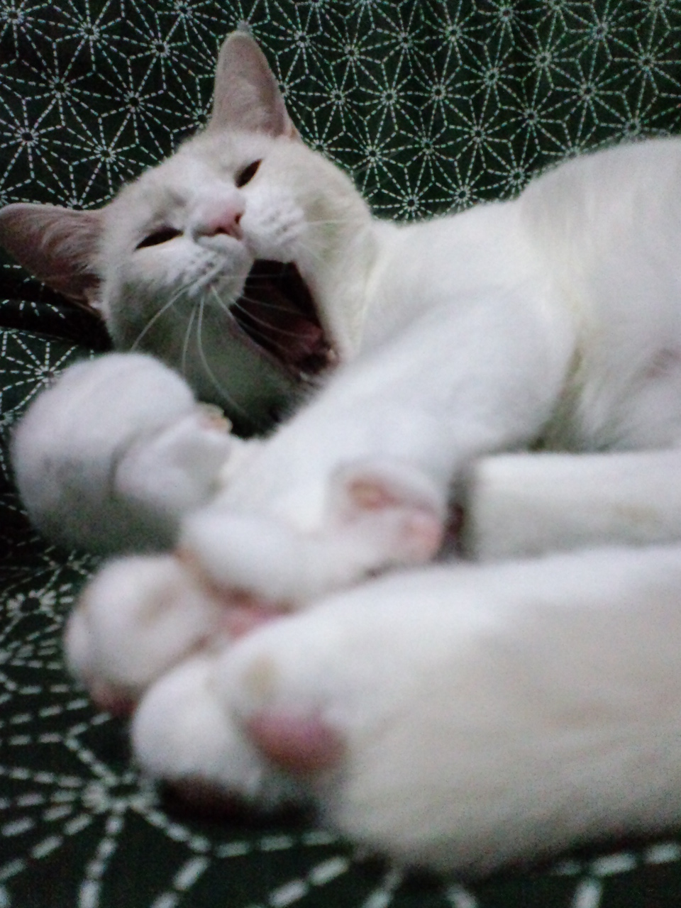 これは…ただ肉球の写真を撮ろうとしたら偶然あくびをしたって場面。