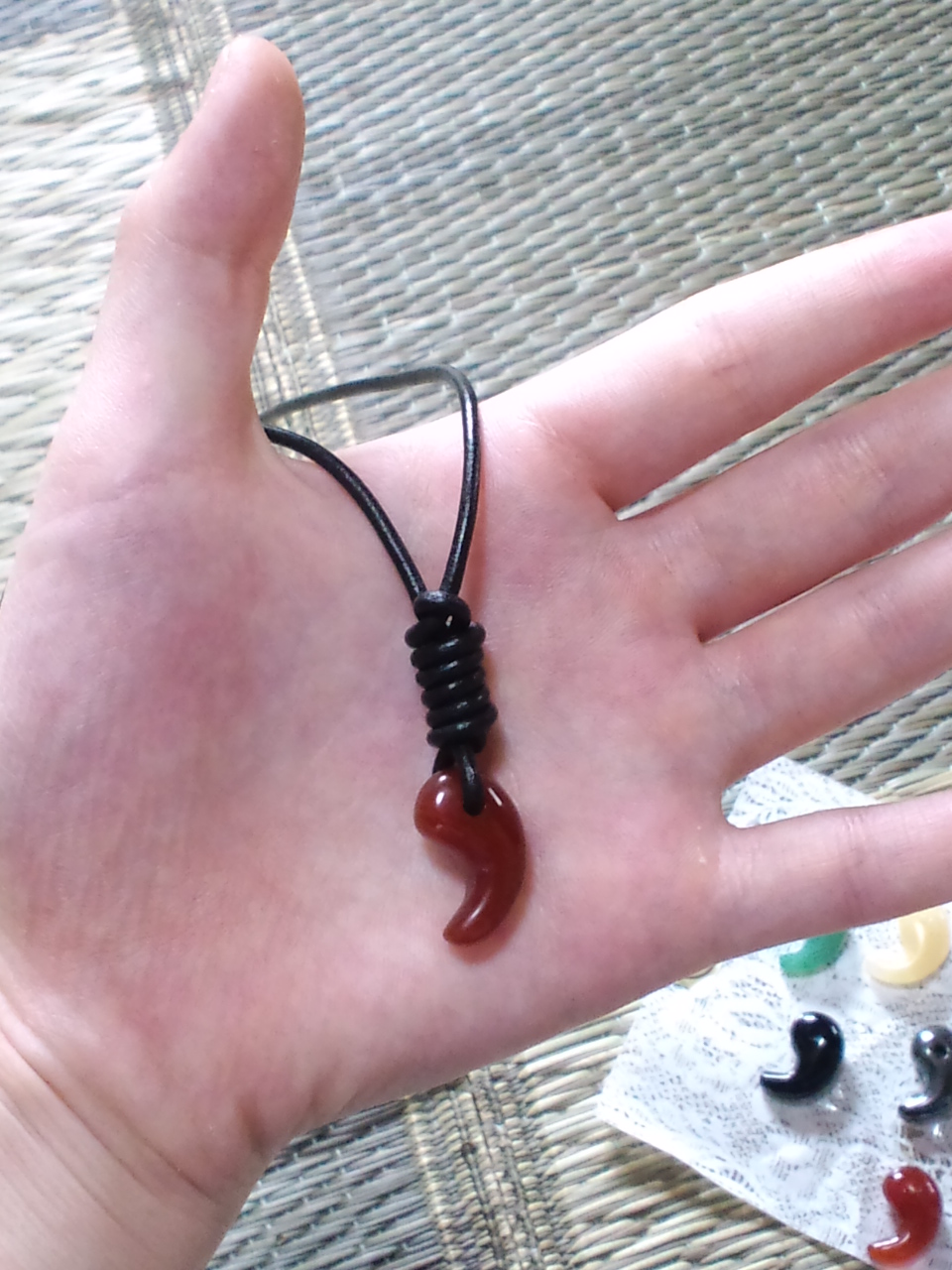 万祥は勾玉をこのようにして持ち歩きます。