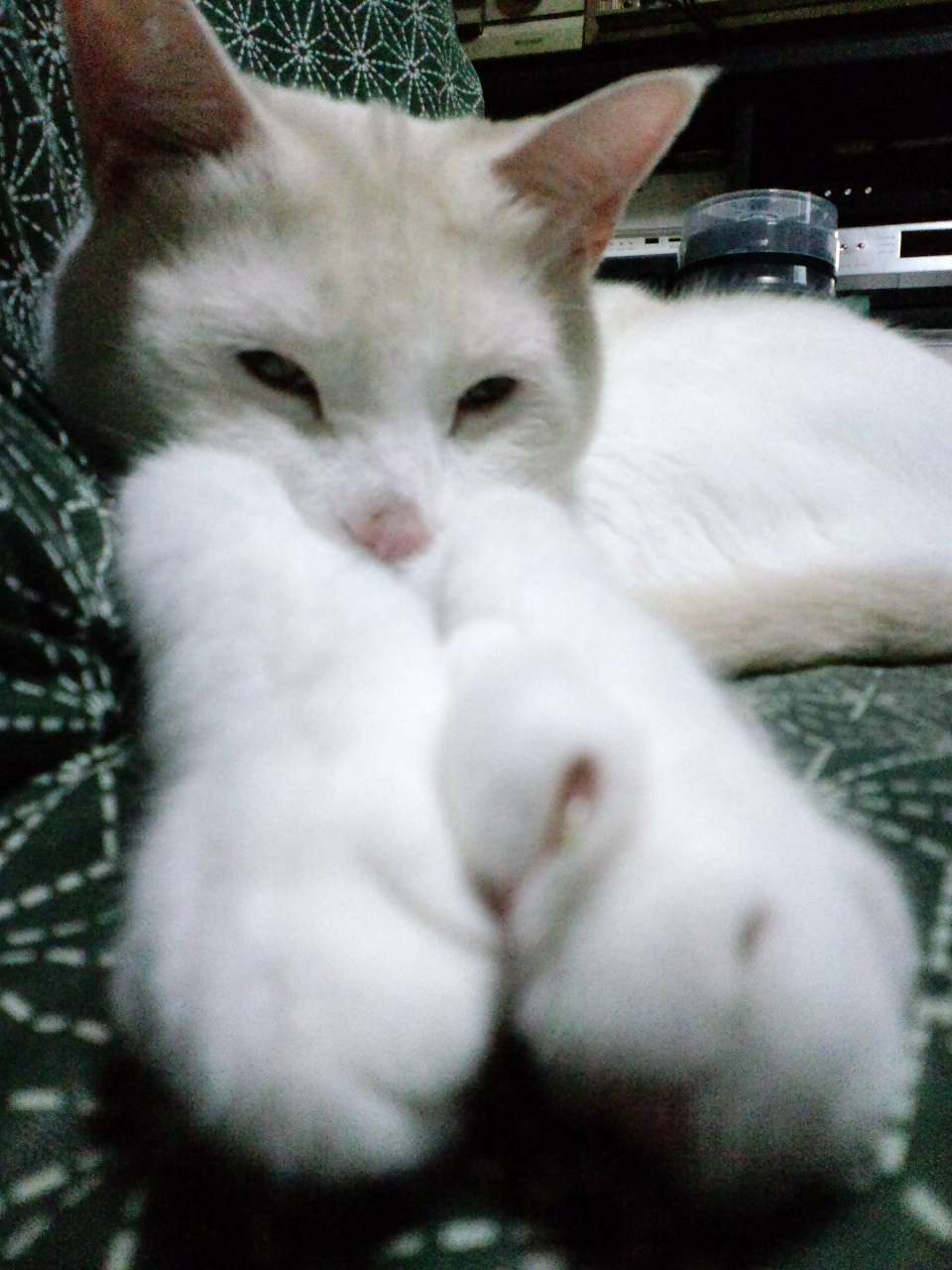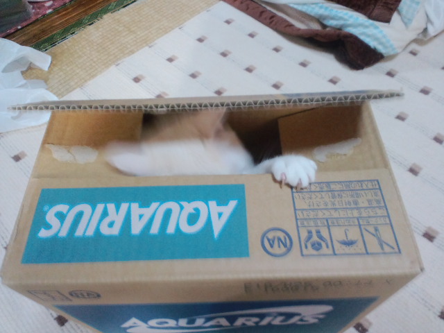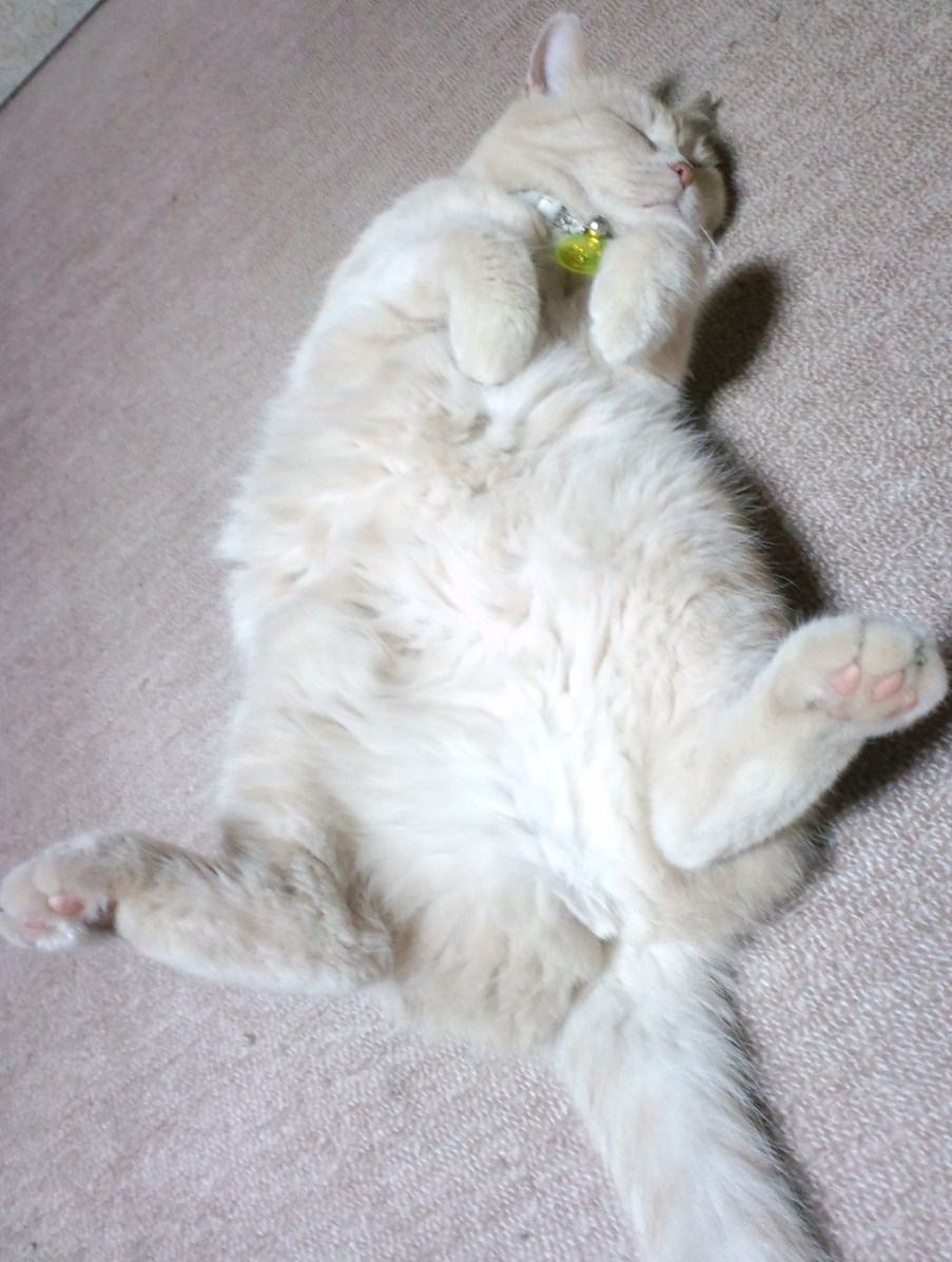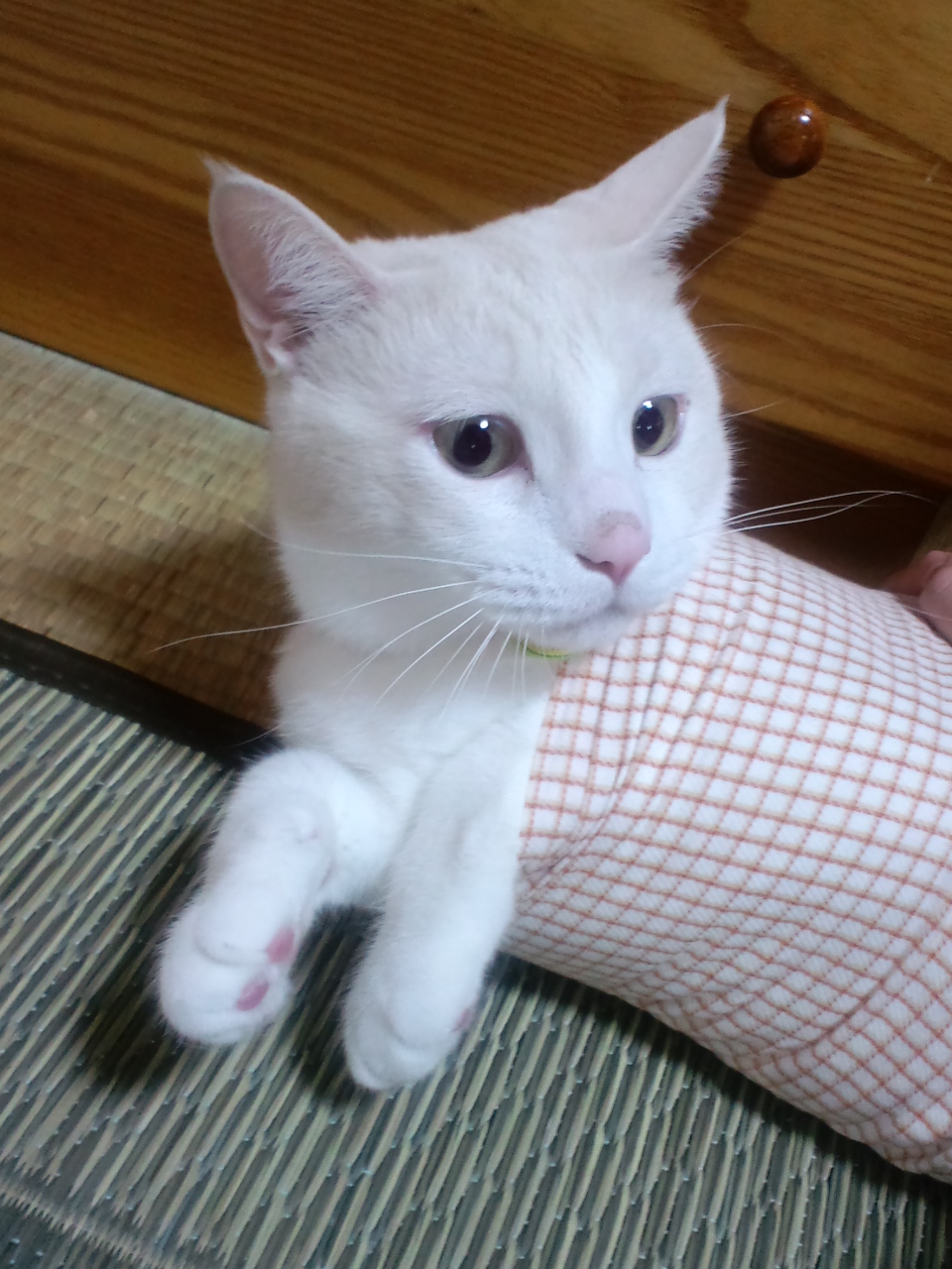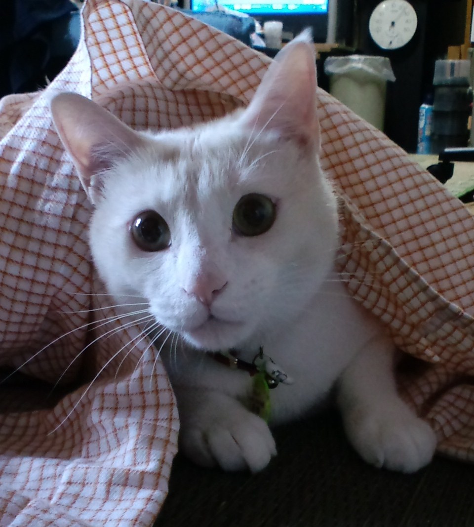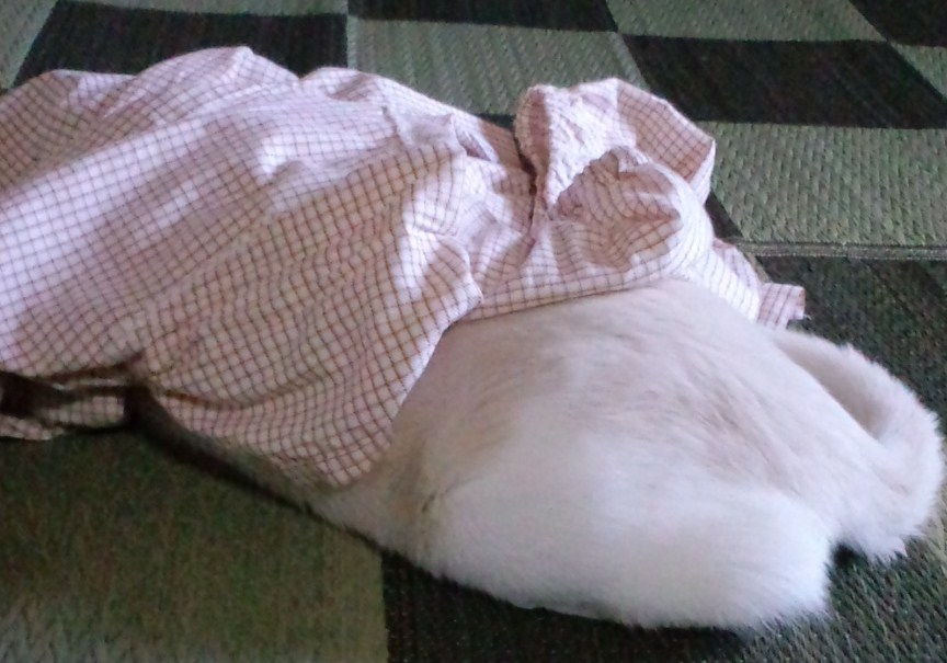 これは今日の朝の祥。私のパジャマに潜ったところ。