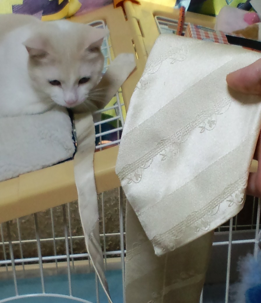 万祥の父のネクタイ(お古)がお気に入りのご様子。